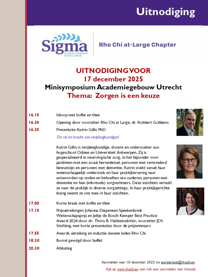 Voor de inductie zijn 7 nieuwe leden voordragen. Ook worden weer diverse verpleegkundige prijzen uitgereikt!Meldt je aan voor het Minisymposium via secretariaat@rhochi.eu